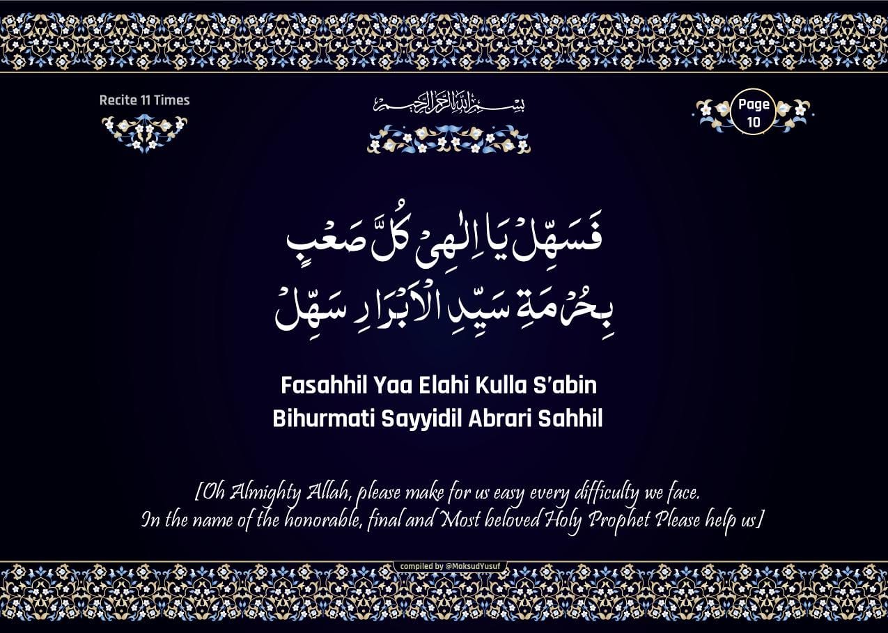 10h Almighty Allah, please make for us easy every difficulty we face. In the name of the honorable, final and Most beloved Holy Prophet Please help us]
