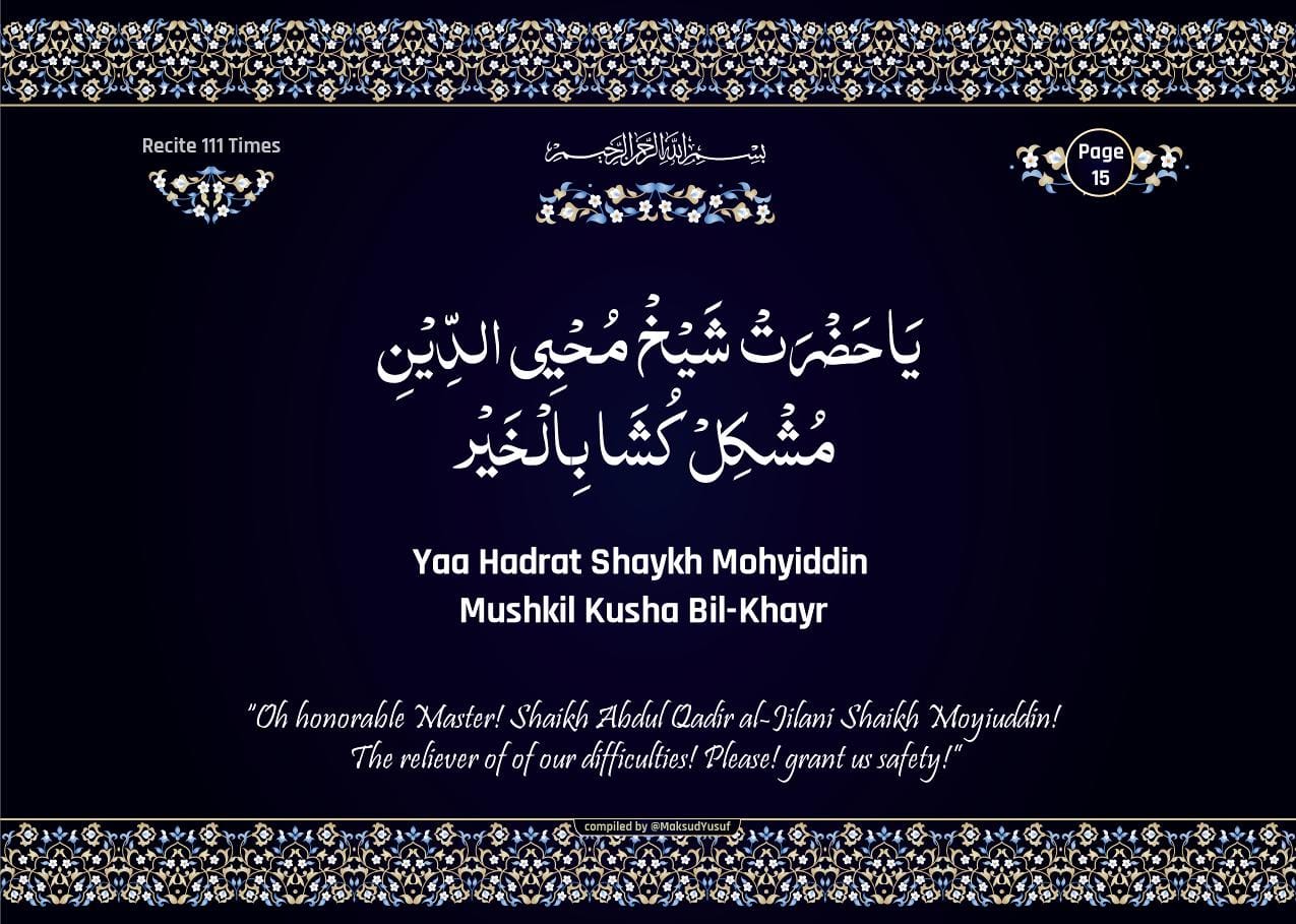 “Oh honorable Master! Shaikh Abdul Qadir al-Jilani Shaikh Moyiuddin! The reliever of of our difficulties! Please! grant us safety!”