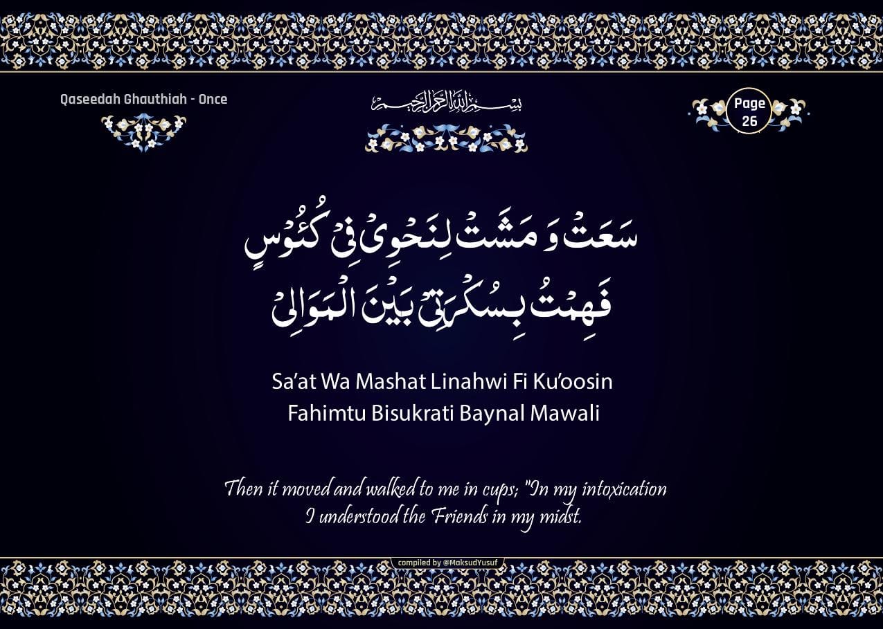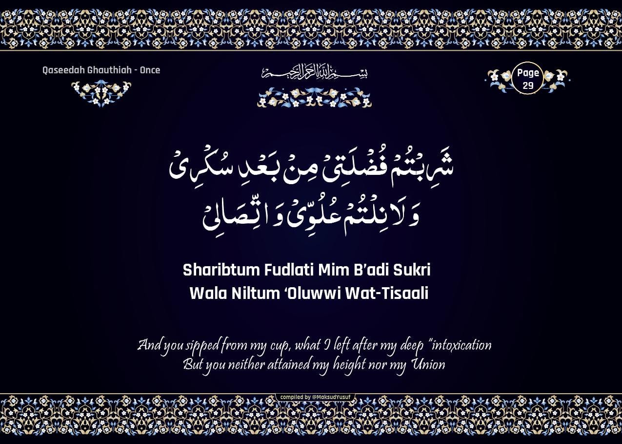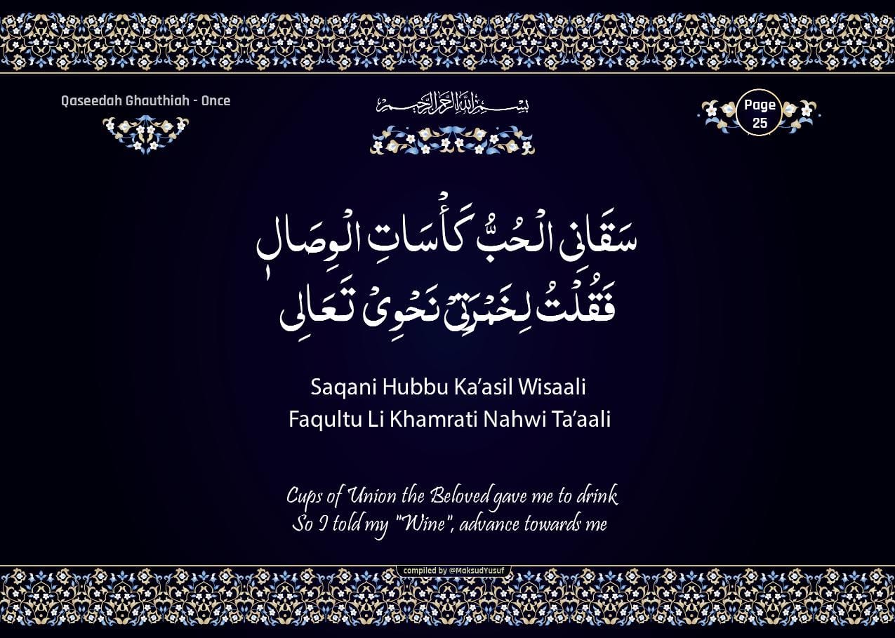 وَكُلُّ وَلِي لَّهُ قَدَهُ وَانّي عَلَى قَدَمِ النَّبِيِّ بَدْرِ الكَمَال