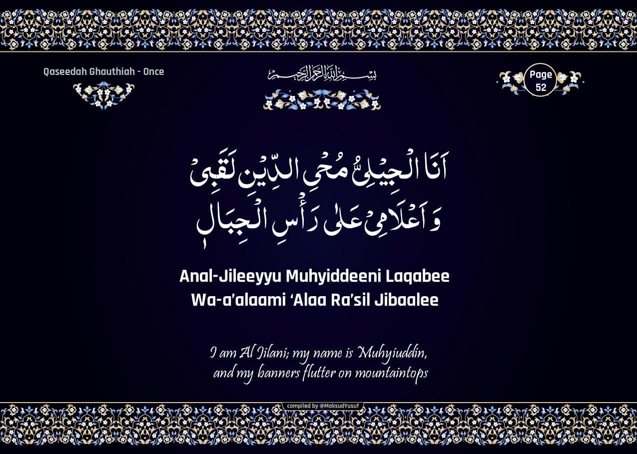 Anal-Jileeyyu Muhyiddeeni Laqabee Wa-a’alaami ‘Alaa Ra’sil Jibaalee