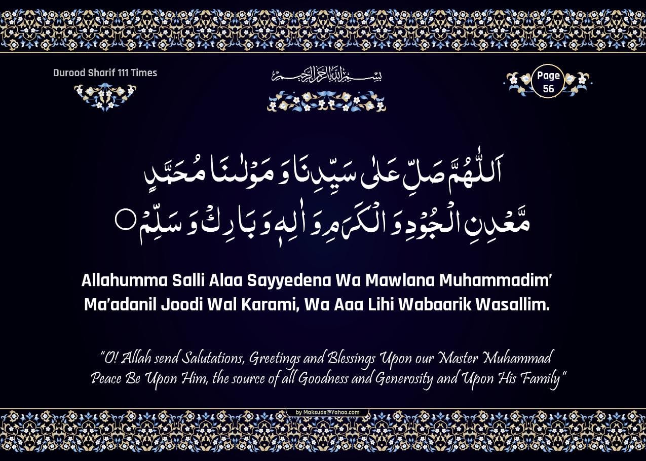 اللّهُمَّ صَلِّ عَلَى سَيِّدِنَا وَ مَوْلنَا مُحَمَّدٍ مَّعْدِنِ الْجُودِ وَ الكَرَمِ وَالِهِ وَبَارِكْ وَسَلّم