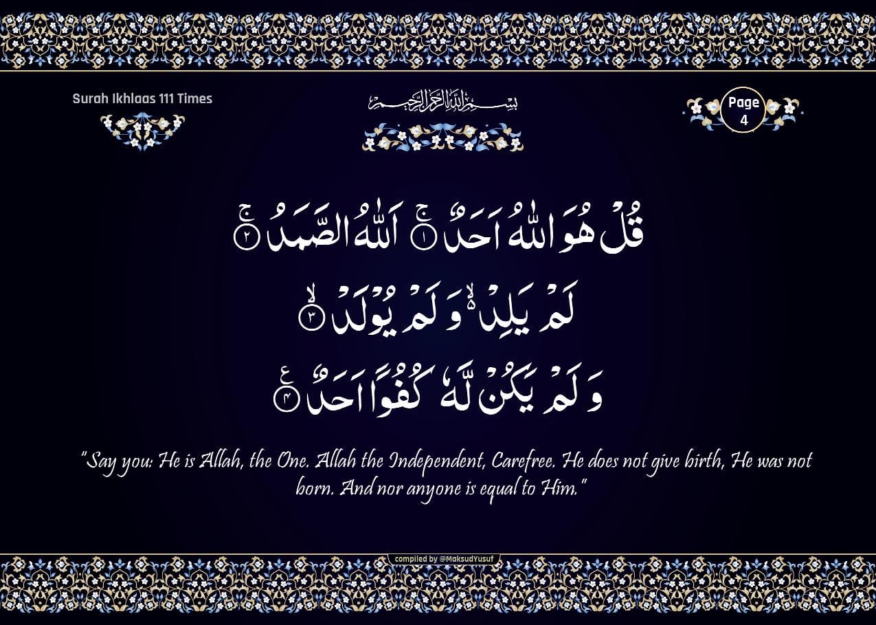 He is Allah, the One. Allah the Independent, Carefree. He does not give birth, He was not born. And nor anyone is equal to Him.”