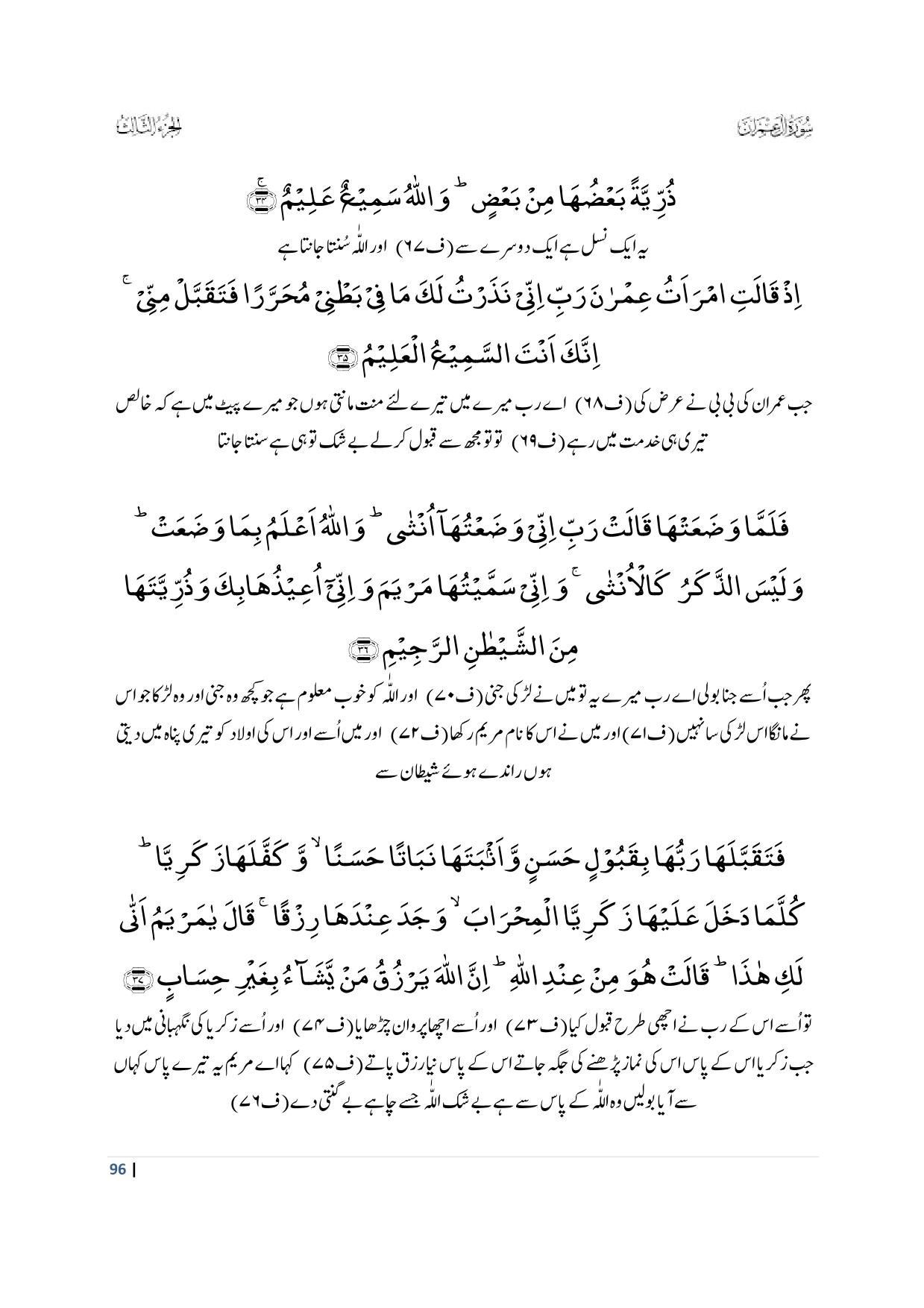 35. Iz Qaalatim Ra Atu ‘Imraana Rabbi Innee Nazartu Laka Maa Fee Batnee Muharraran Fataqabbal Minnee Innaka Antas Samee’ul ‘Aleem
