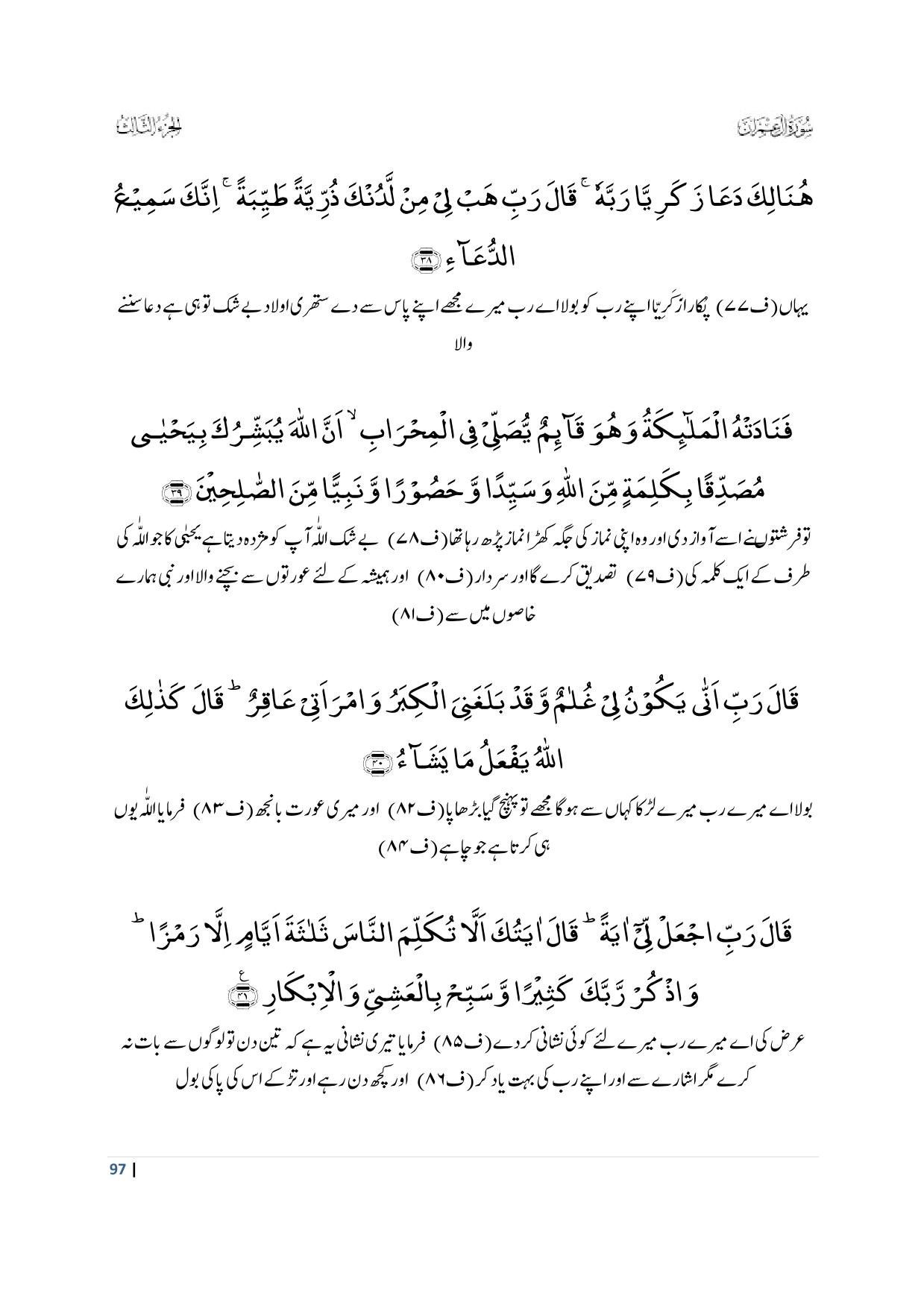 41. Qaala Rabbij ‘Al Leee Aayatan Qaala Aaayatuka Allaa Tukalliman Naasa Salaasata Ayyaamin Illa Ramzaa; Wazkur Rabbaka Kaseeranw Wa Sabbih Bil’ashiyyi Wal Ibkaar (Section 4)