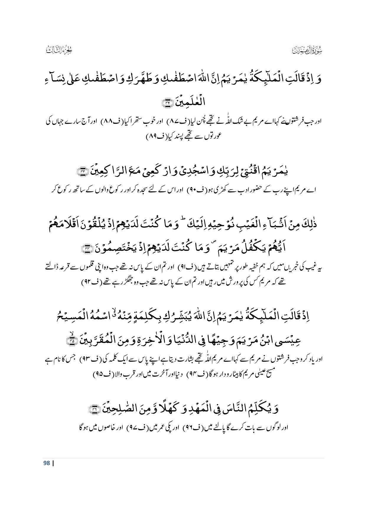 46. Wa Yukallimun Naasa Filmahdi Wa Kahlanw Wa Minassaaliheen