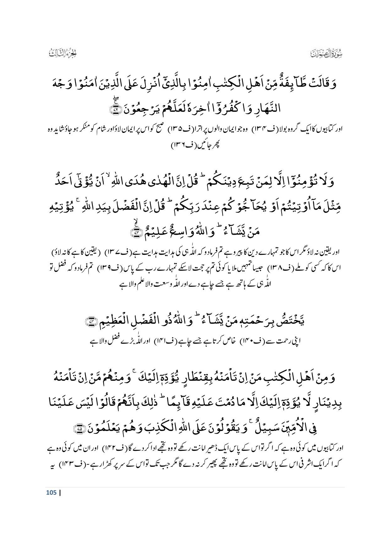 72. Wa Qaalat Taaa’ifatum Min Ahlil Kitaabi Aaminoo Billazeee Unzila ‘Alal Lazeena Aamanoo Wajhan Nahaari Wakfurooo Aakhirahoo La’alla Hum Yarji’oon