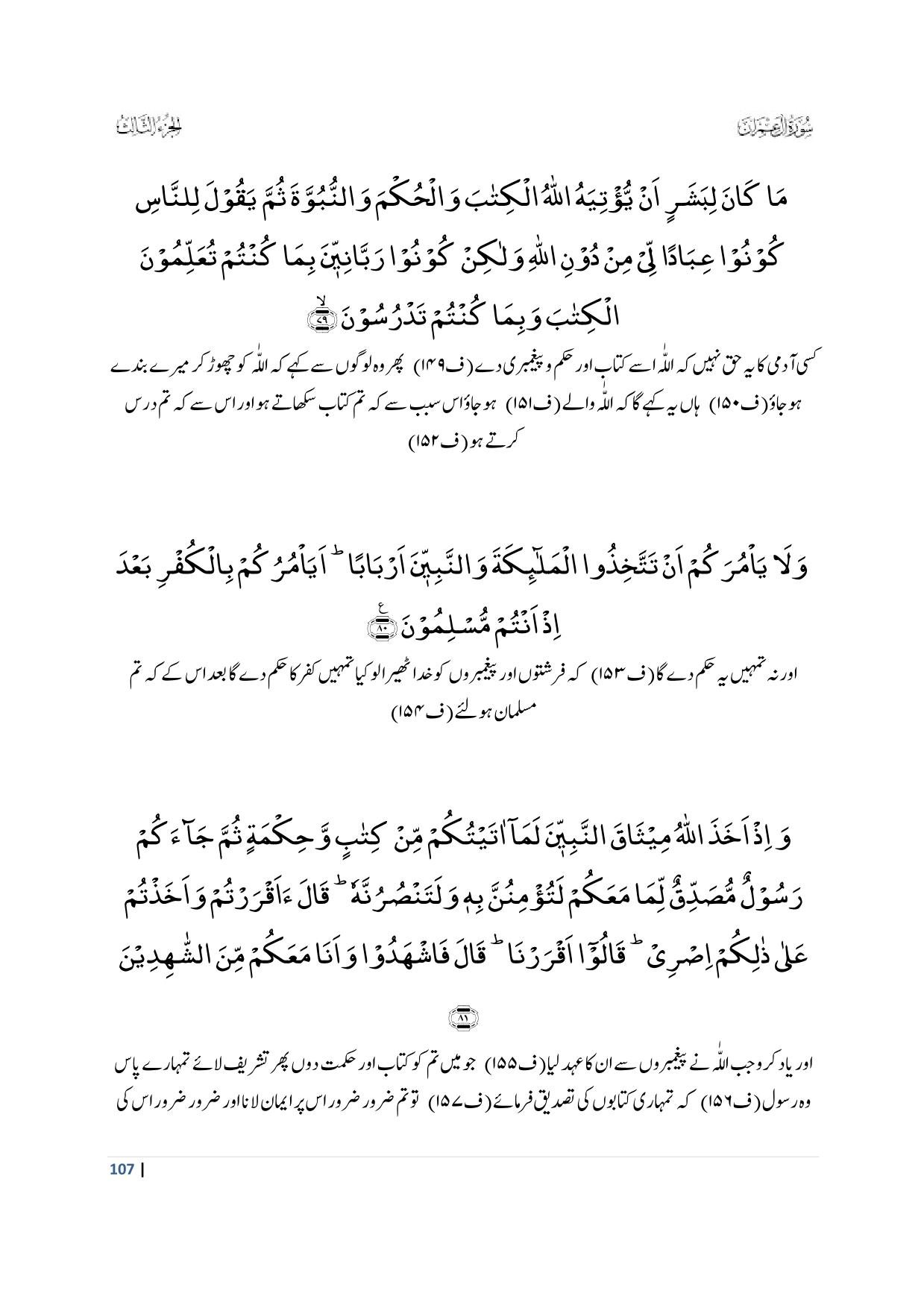 79. Maa Kaana Libasharin Ai Yu’tiyahul Laahul Kitaaba Walhukma Wan Nubuwwata Summa Yaqoola Linnaasi Koonoo ‘Ibaadal Lee Min Doonil Laahi Wa Laakin Koonoo Rabbaaniy Yeena Bimaa Kuntum Tu’allimoonal Kitaaba Wa Bimaa Kuntum Tadrusoon