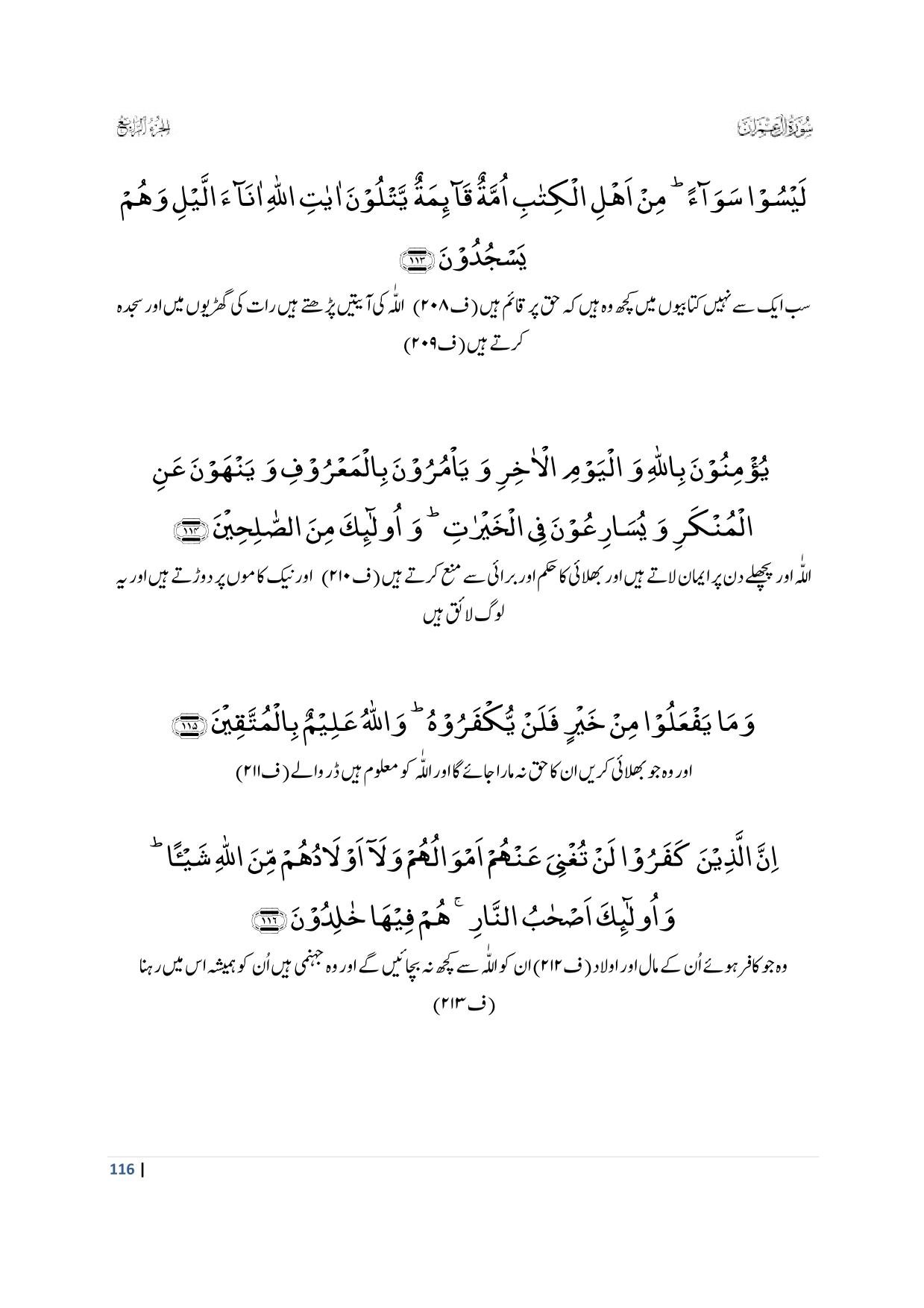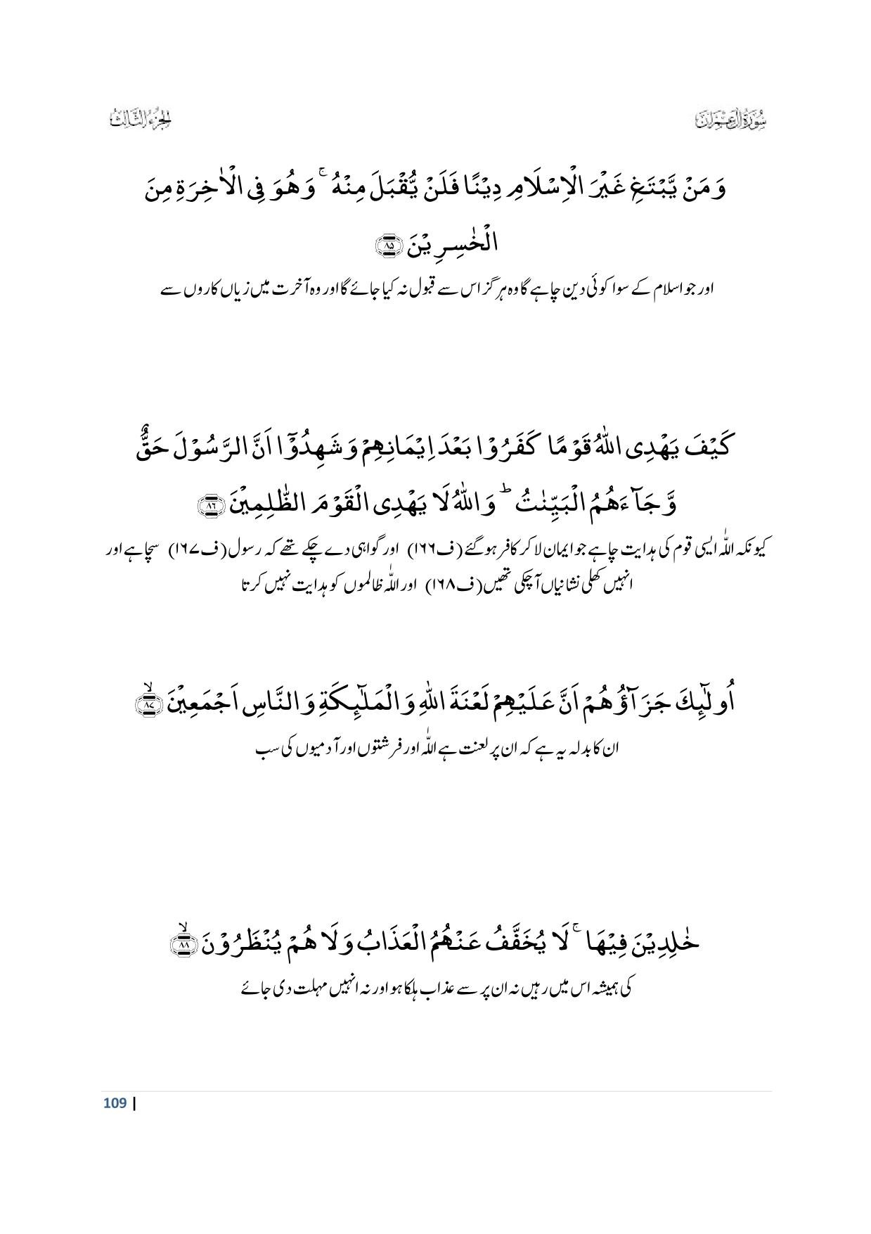 91. Innal Lazeena Kafaroo Wa Maatoo Wa Hum Kuffaarun Falany Yuqbala Min Ahadihim Mil’ul Ardi Zahabanw Wa Lawiftadaa Bih; Ulaaa ‘Ika Lahum ‘Azaabun Aleemunw Wa Maa Lahum Min Naasireen (Section 9) (End Juz 3)