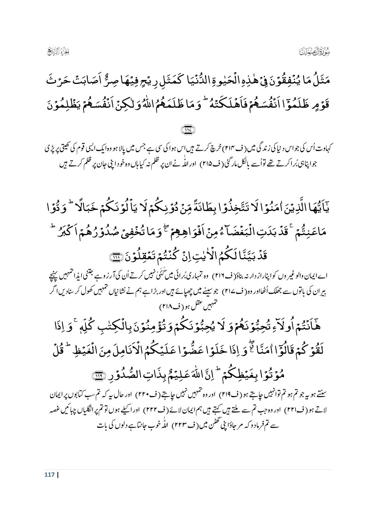118. Yaaa Ayyuhal Lazeena Aamanoo Laa Tattakhizoo Bitaanatam Min Doonikum Laa Ya’loonakum Khabaalanw Waddoo Maa ‘Anittum Qad Badatil Baghdaaa’u Min Afwaahihim; Wa Maa Tukhfee Sudooruhum Akbar; Qad Baiyannaa Lakumul Aayaati In Kuntum Ta’qiloon