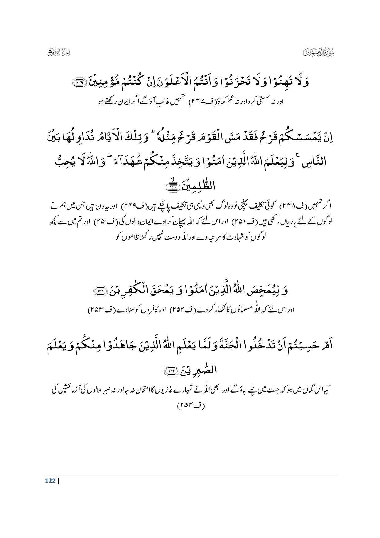139. Wa Laa Tahinoo Wa Laa Tahzanoo Wa Antumul A’lawna In Kuntum Mu’mineen