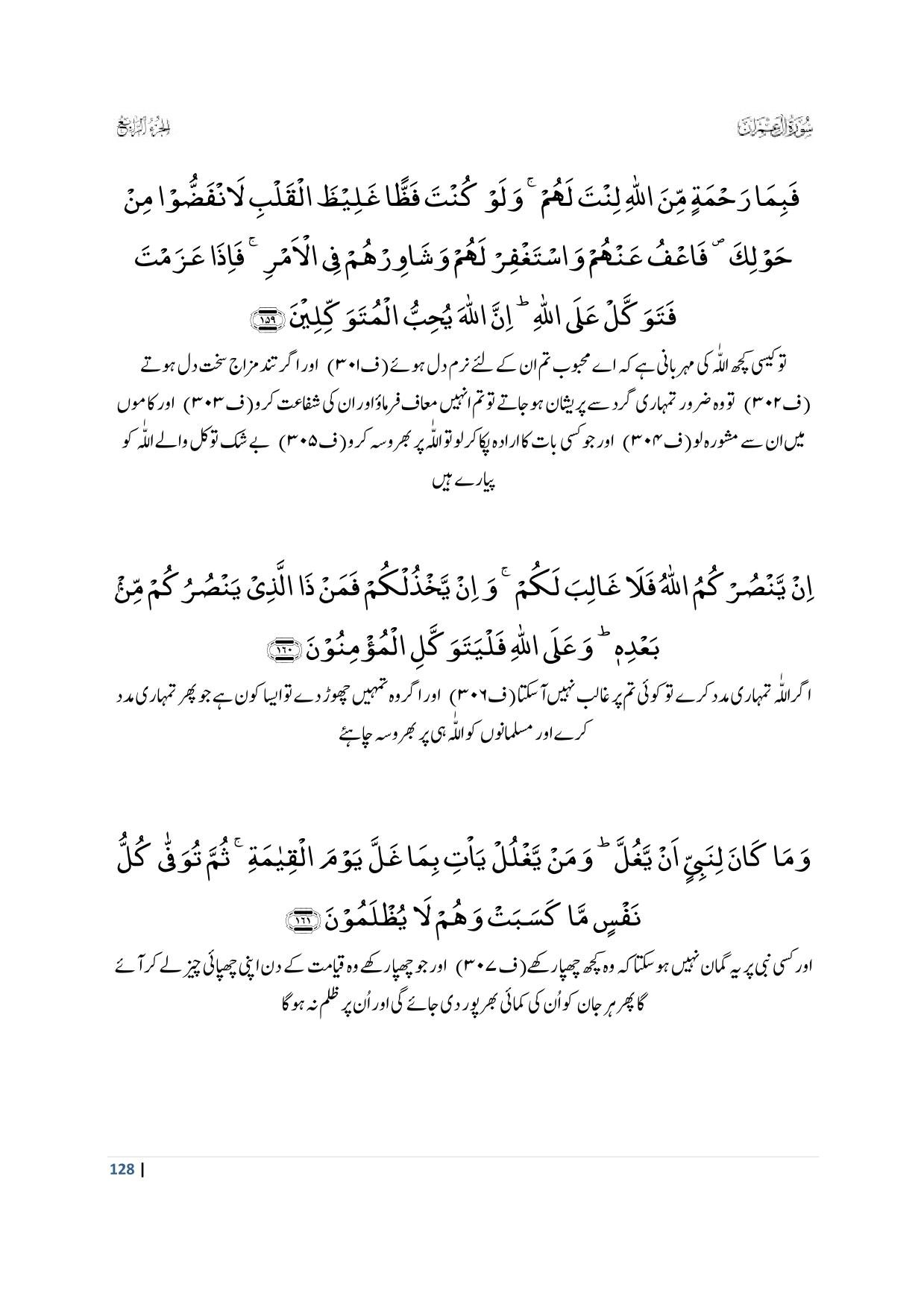 159. Fabimaa Rahmatim Minal Laahi Linta Lahum Wa Law Kunta Fazzan Ghaleezal Qalbi Lanfaddoo Min Hawlika Fa’afu ‘Anhum Wastaghfir Lahum Wa Shaawirhum Fil Amri Fa Izaa ‘Azamta Fatawakkal ‘Alal Laah; Innallaaha Yuhibbul Mutawak Kileen