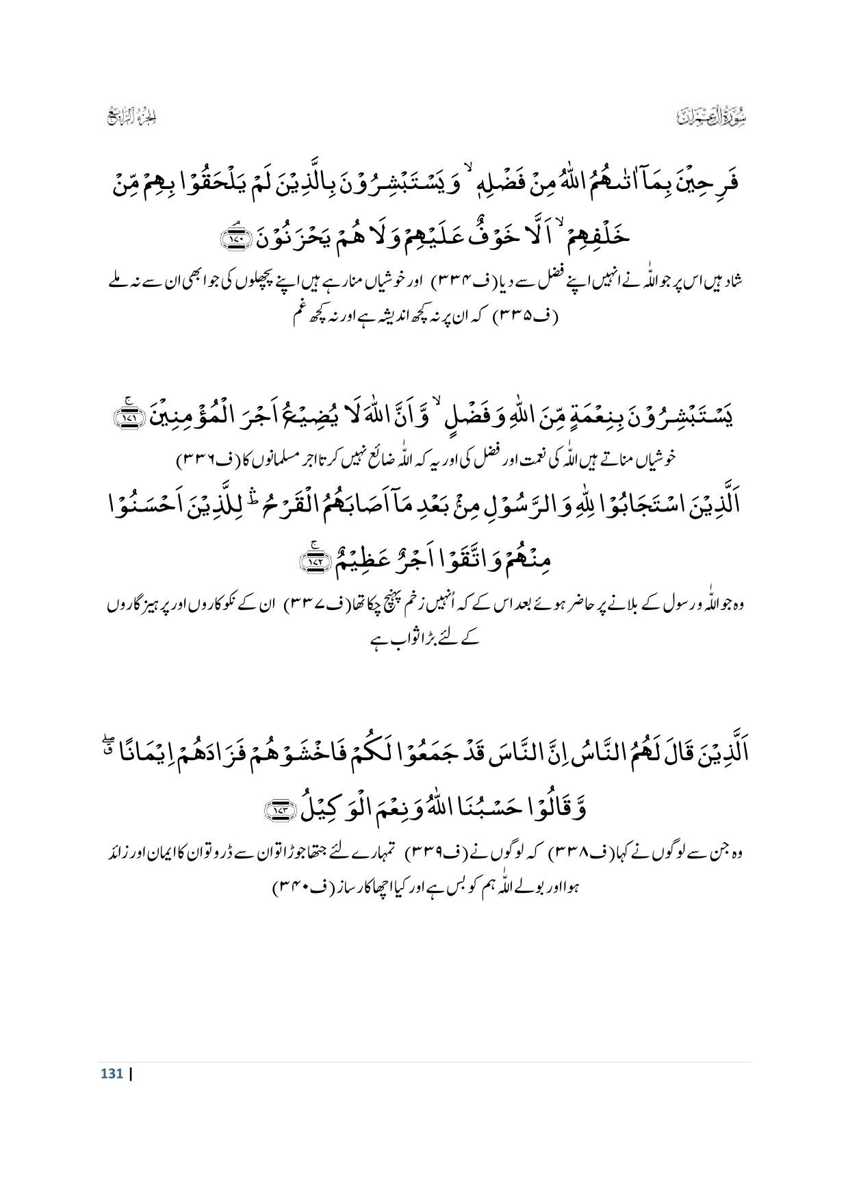171. Yastabshiroona Bini’matim Minal Laahi Wa Fad Linw Wa Annal Laaha Laa Yudee’u Ajral Mu’mineen (Section 17)