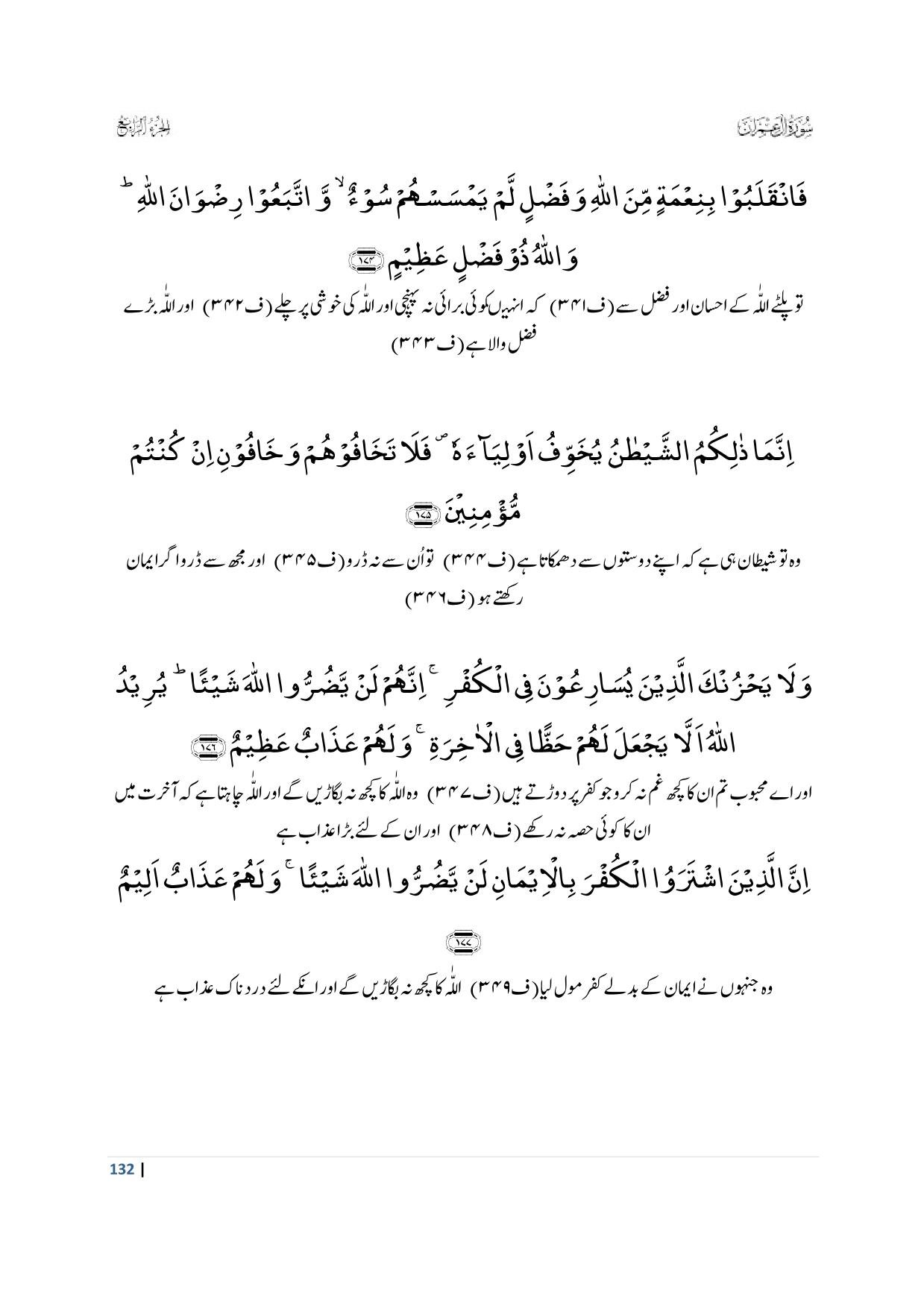 174. Fanqalaboo Bini’matim Minal Laahi Wa Fadlil Lam Yamsashum Sooo’unw Wattaba’oo Ridwaanal Laah; Wallaahu Zoo Fadlin ‘Azeem