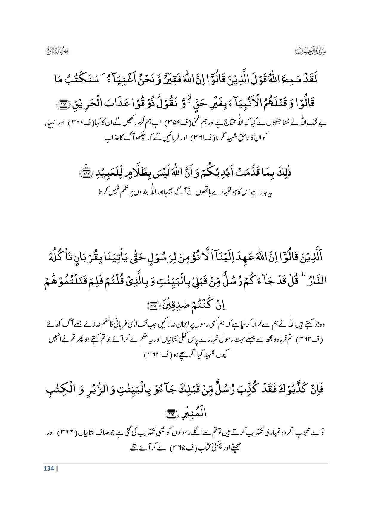 181. Laqad Sami’al Laahu Qawlal Lazeena Qaalooo Innal Laaha Faqeerunw Wa Nahnu Aghniyaaa’; Sanaktubu Maa Qaaloo Wa Qatlahumul Ambiyaa’a Bighairi Haqqinw Wa Naqoolu Zooqoo ‘Azaabal Hareeq