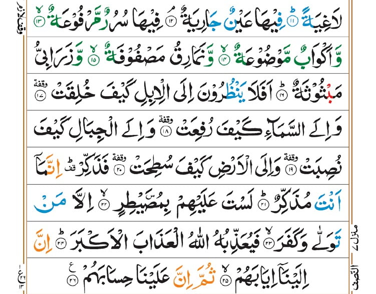 15. وَنَمَارِقُ مَصْفُوفَةٌ