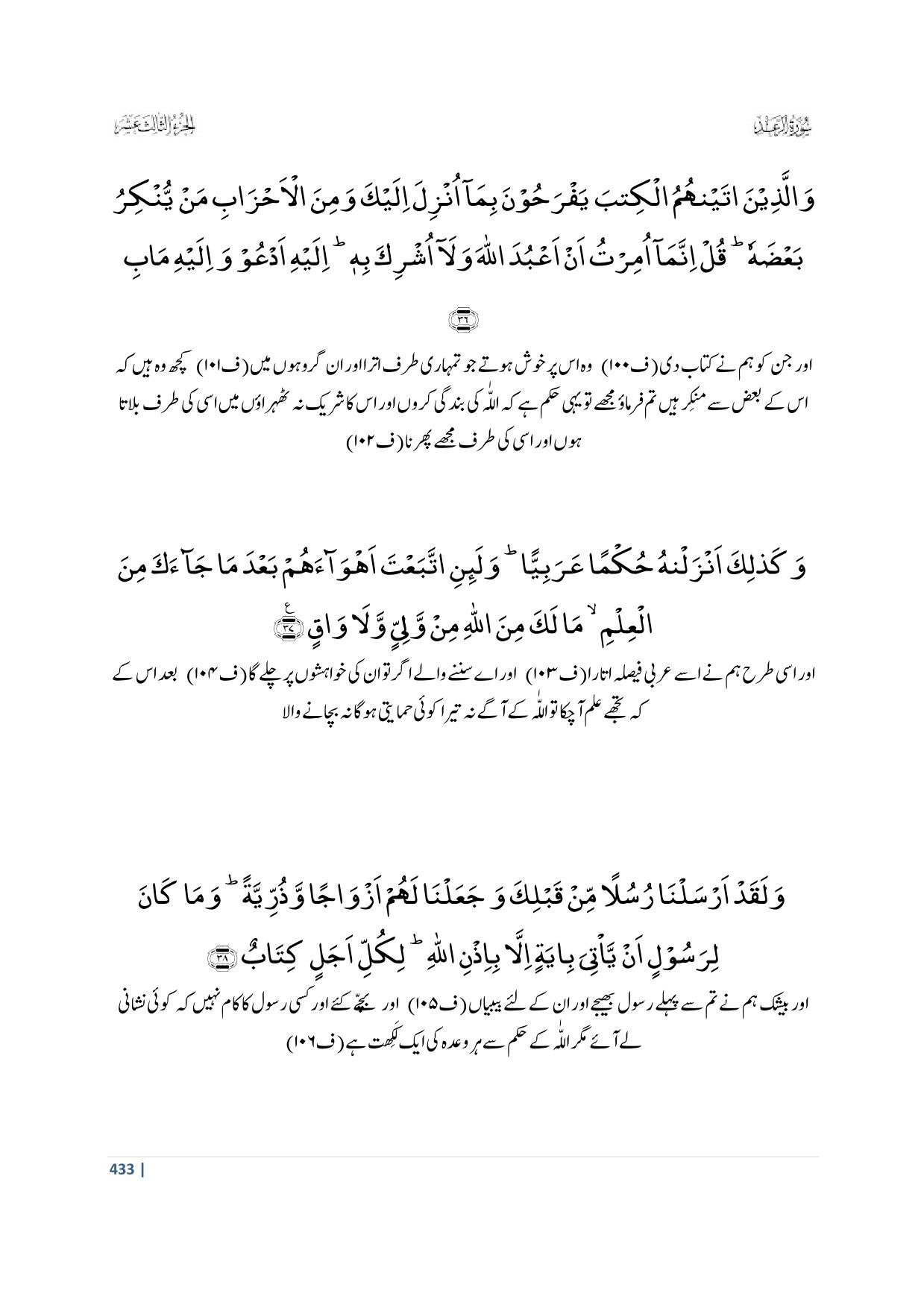 37. Wa Kazaalika Anzalnaahu Hukman ‘Arabiyyaa; Wa La’init Taba’ta Ahwaaa ‘Ahum Ba’da Maa Jaaa’aka Minal ‘Ilmi Maa Laka Minal Laahi Minw Waliyinw Wa Laa Waaq (Section 5)