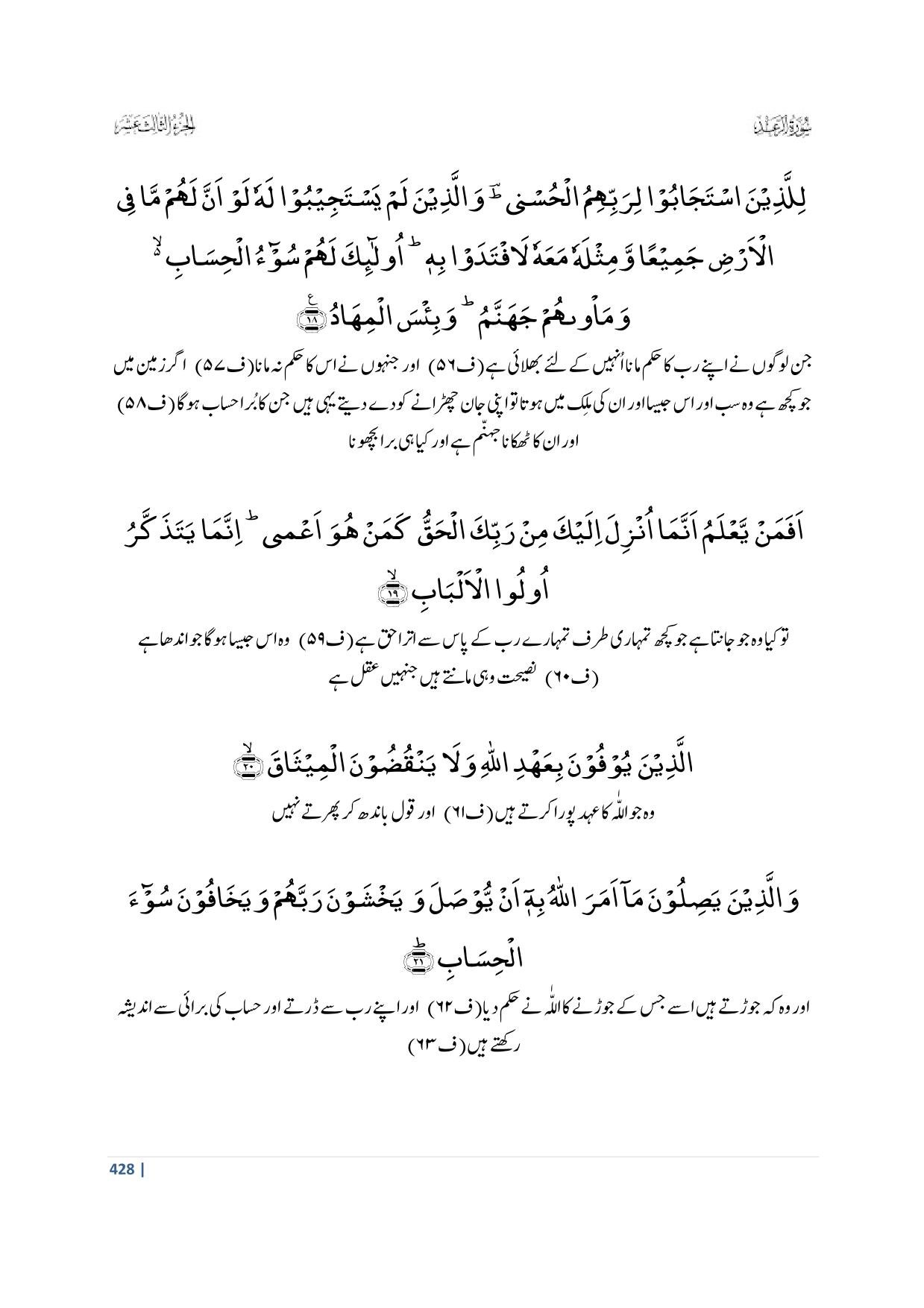 18. Lillazeenas Tajaaboo Lirabbihimul Husnaa; Wallazeena Lam Yastajeeboo Lahoo Law Anna Lahum Maa Fil Ardi Jamee’anw Wa Mislahoo Ma’ahoo Laftadaw Bih; Ulaaa’ika Lahum Sooo’ul Hisaab; Wa Ma’waahum Jahannamu Wa Bi’sal Mihaad (Section 2)