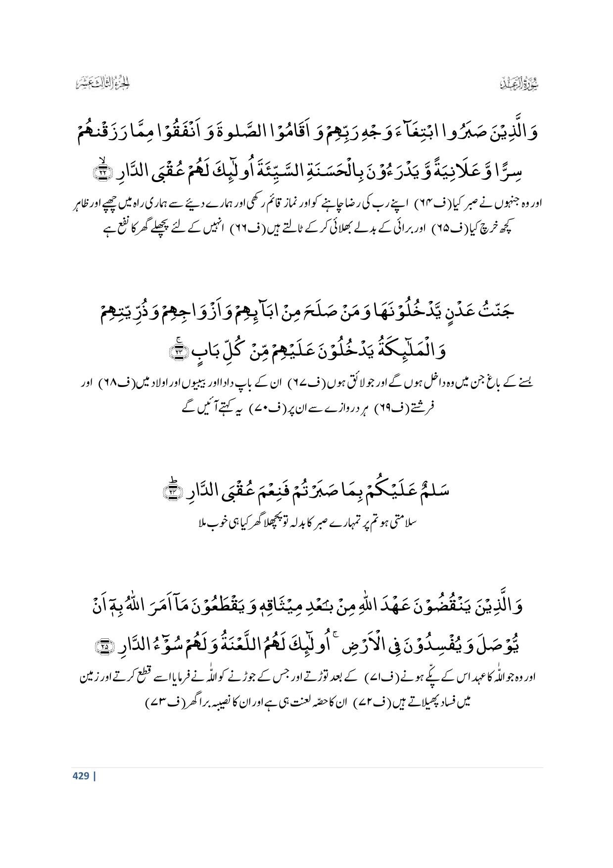 22. Wallazeena Sabarub Tighaaa’a Wajhi Rabbihim Wa Aqaamus Salaata Wa Anfaqoo Mimmaa Razaqnaahum Sirranw Wa ‘Alaaniyatanw Wa Yadra’oona Bilhasanatis Saiyi’ata Ulaaa’ika Lahum ‘Uqbad Daar