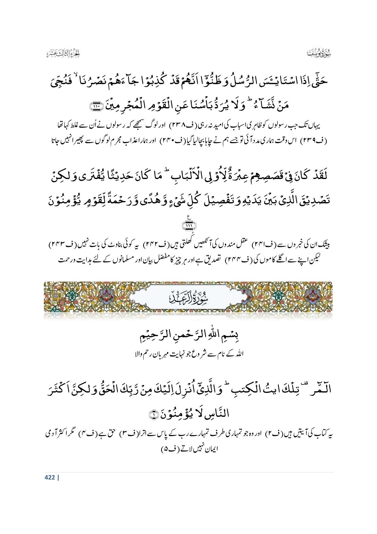 52. Zaalika Liya’lama Annee Lam Akhunhu Bilghaibi Wa Annal Laaha Laa Yahdee Kaidal Khaaa’ineen (End Juz 12)
